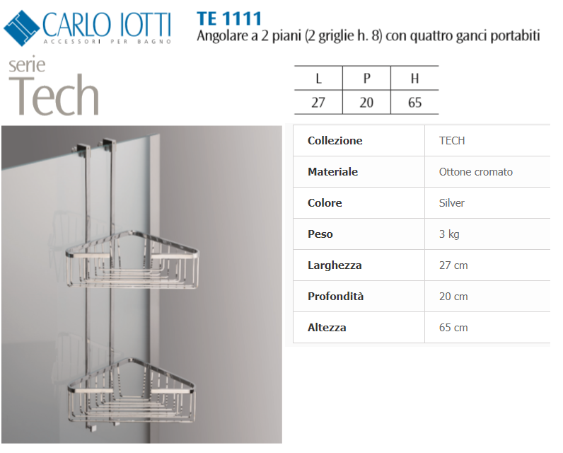 Raffinata e moderna, la collezione di design TECH in ottone cromato, arreda il box doccia utilizzando un concept assolutamente innovativo: le capienti griglie rettangolari e ad angolo, disponibili in diverse profondità e larghezze, possono essere fissate o appoggiate al box doccia, trasformando la stanza da bagno in un ambiente elegante e funzionale.