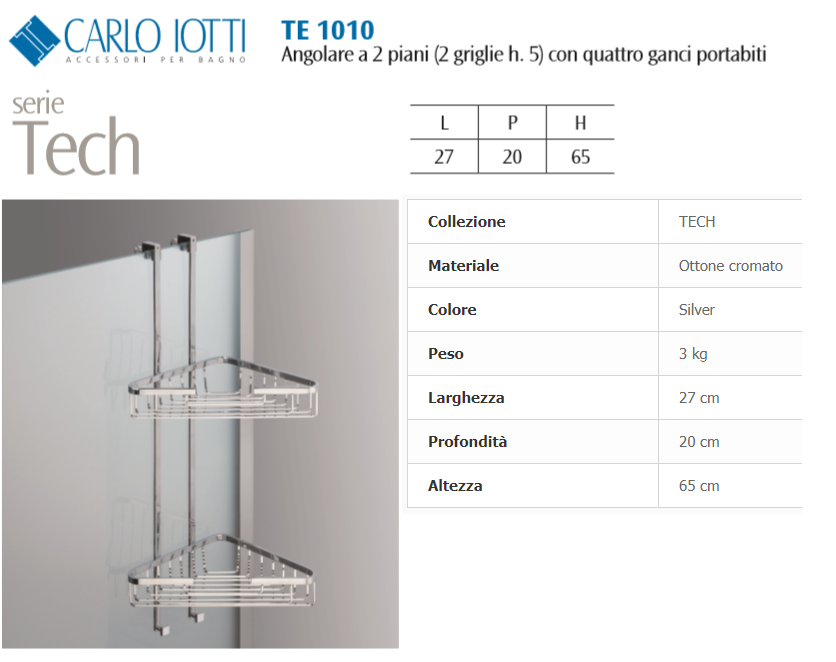 Raffinata e moderna, la collezione di design TECH in ottone cromato, arreda il box doccia utilizzando un concept assolutamente innovativo: le capienti griglie rettangolari e ad angolo, disponibili in diverse profondità e larghezze, possono essere fissate o appoggiate al box doccia, trasformando la stanza da bagno in un ambiente elegante e funzionale.