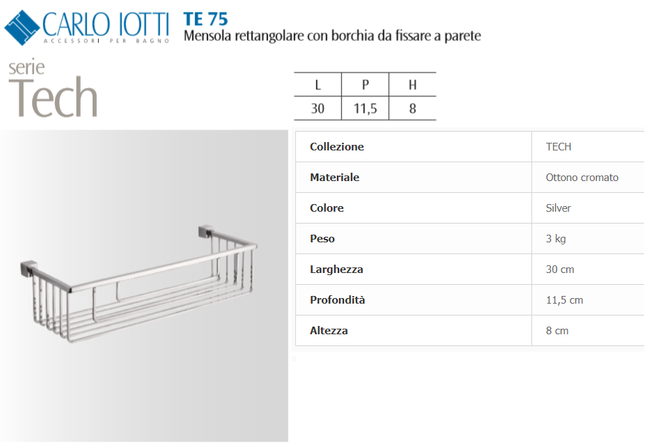 Raffinata e moderna, la collezione di design TECH in ottone cromato, arreda il box doccia utilizzando un concept assolutamente innovativo: le capienti mensole rettangolari, disponibili in diverse profondità e larghezze, possono essere fissate o appoggiate al box doccia, trasformando la stanza da bagno in un ambiente elegante e funzionale.