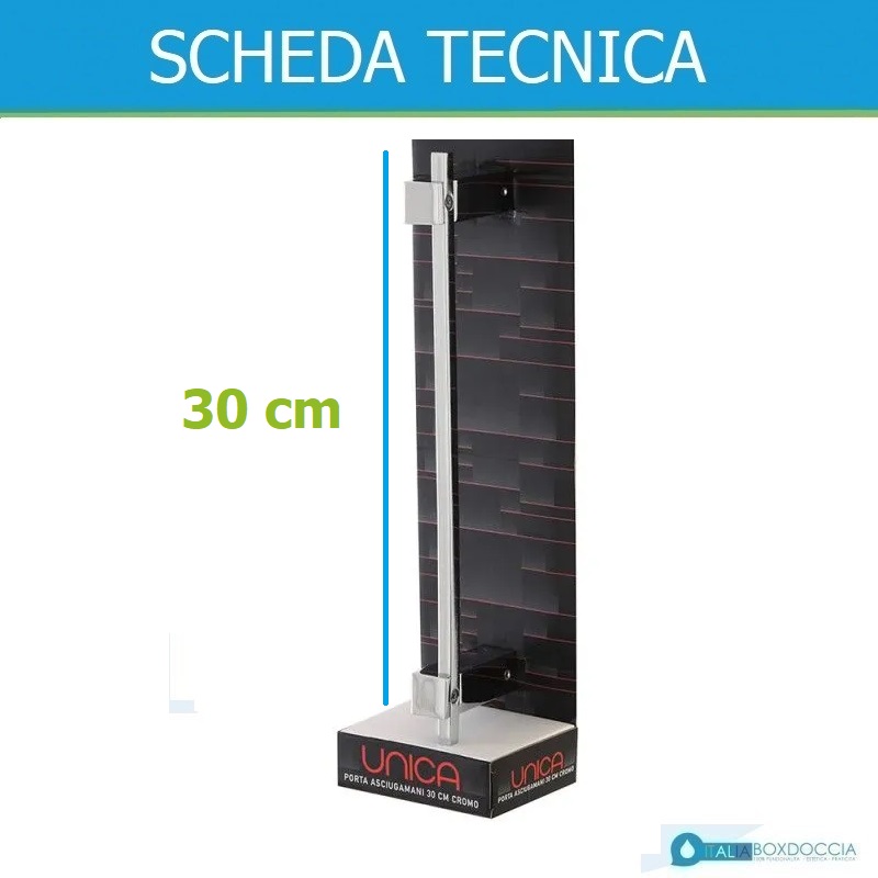 L'acciaio cromato è un materiale molto apprezzato per le sue caratteristiche meccaniche ed estetiche. Trova molta diffusione nel settore dell'arredo bagno grazie alle sue doti di resistenza alla corrosione, facilità di manutenzione e di pulizia. Questo portasciugamani da bagno con una lunghezza di 30 cm è interamente realizzato in acciaio cromato con piastrine di fissaggio in acciaio antiruggine.