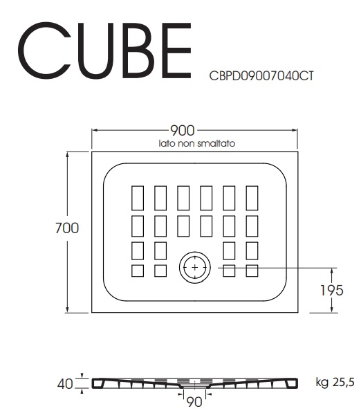 è un piatto doccia in ceramica per un’altezza di 4 cm con bordo a rilievo che risolve attraverso un pattern grafico tridimensionale la funzione antiscivolo, convertendola in estetica grazie a una maglia geometrica a griglia ortogonale. Oltre che decorativo, il motivo favorisce al meglio il deflusso dell’acqua verso la piletta di scarico.