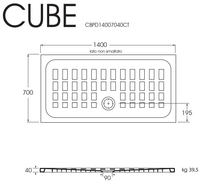 è un piatto doccia in ceramica per un’altezza di 4 cm con bordo a rilievo che risolve attraverso un pattern grafico tridimensionale la funzione antiscivolo, convertendola in estetica grazie a una maglia geometrica a griglia ortogonale. Oltre che decorativo, il motivo favorisce al meglio il deflusso dell’acqua verso la piletta di scarico.