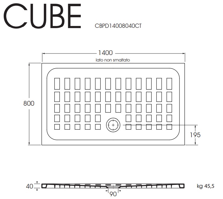 è un piatto doccia in ceramica per un’altezza di 4 cm con bordo a rilievo che risolve attraverso un pattern grafico tridimensionale la funzione antiscivolo, convertendola in estetica grazie a una maglia geometrica a griglia ortogonale. Oltre che decorativo, il motivo favorisce al meglio il deflusso dell’acqua verso la piletta di scarico.