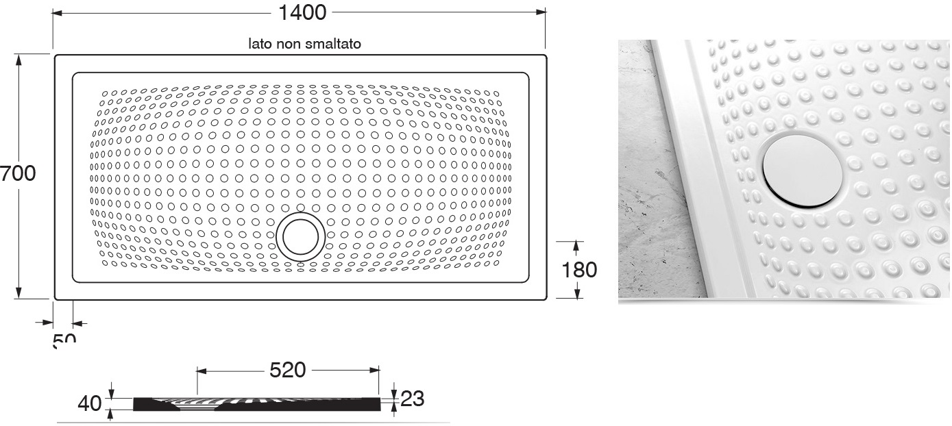 Piatto doccia relax con particolare texture che offre un naturale massaggio plantare