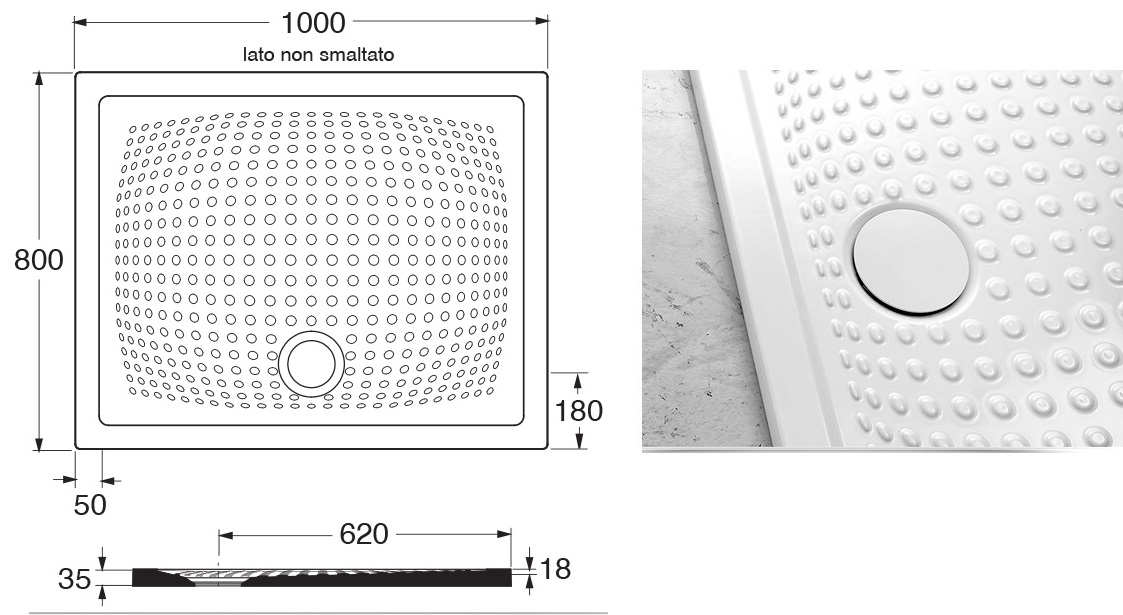 Piatto doccia relax con particolare texture che offre un naturale massaggio plantare