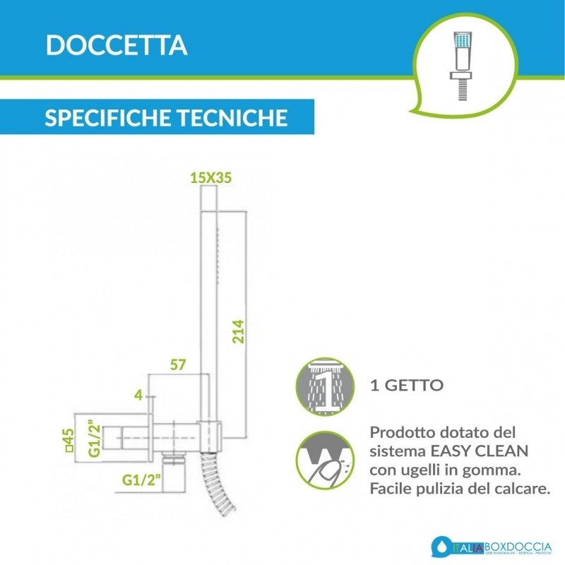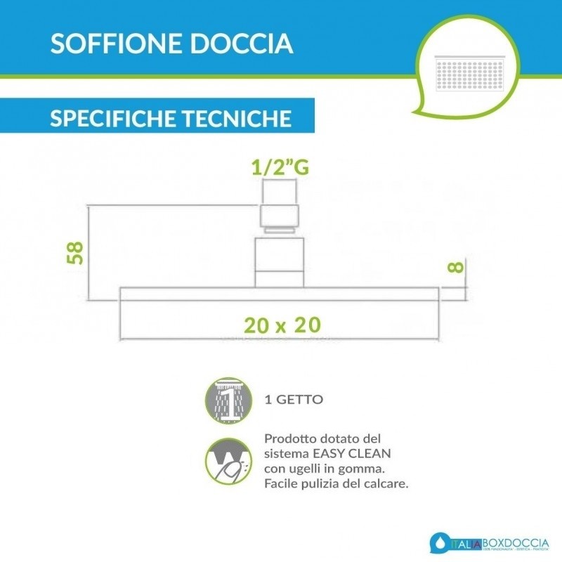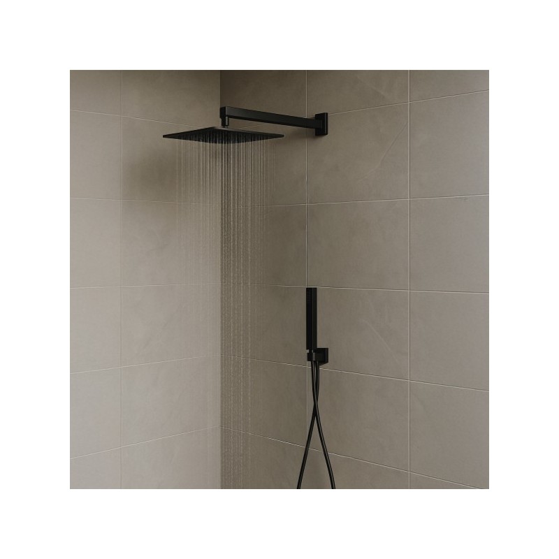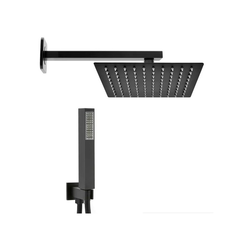 Elegante composizione doccia composta da un soffione quadro ultra piatto 20 x 20 cm completo di braccio lungo 30 cm e kit duplex. Il soffione doccia è realizzato in ottone con finitura nera opaca ed è dotato del sistema brevettato "Easy Clean" che, grazie all'adozione di ugelli in gomma, facilita la rimozione del calcare. Il kit duplex fornito in dotazione è composto da doccetta di forma quadrata, realizzata in ABS con ugelli anticalcare, flessibile in PVC nero e supporto a muro con presa acqua integrata. Perchè scegliere le nostre composizioni doccia? ItaliaBoxDoccia propone molte composizioni doccia progettate per semplificare la scelta di tutti gli elementi necessari a realizzare una zona doccia di grande qualità garantendo il massimo della funzionalità . Tutti gli elementi inclusi nella composizione sono compatibili da loro e certificati per funzionare insieme. Ciò permette di risparmiare tempo nelle fasi di installazione e garantisce una elevata durata nel tempo.