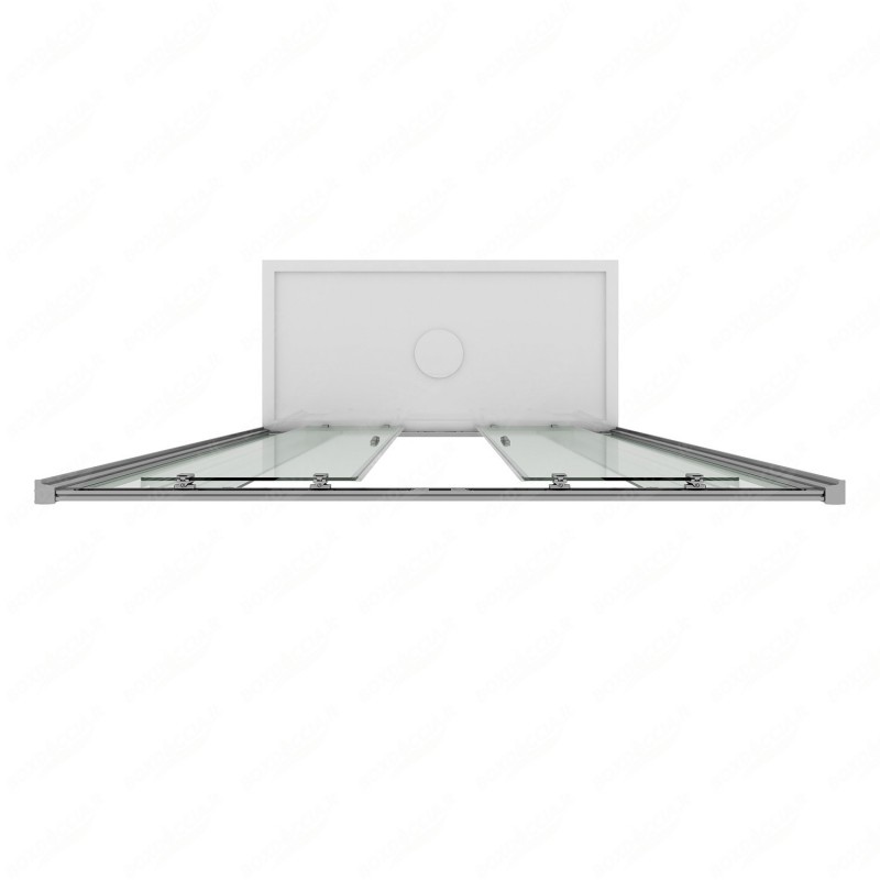 Cabina a nicchia formata da quattro ante, di cui due fisse e due scorrevoli. Pertanto l'ingresso è frontale. Lo scorrimento avviene su ruote ed il bloccaggio delle ante in posizione di chiusura è garantito da guarnizioni magnetiche sulla battuta.