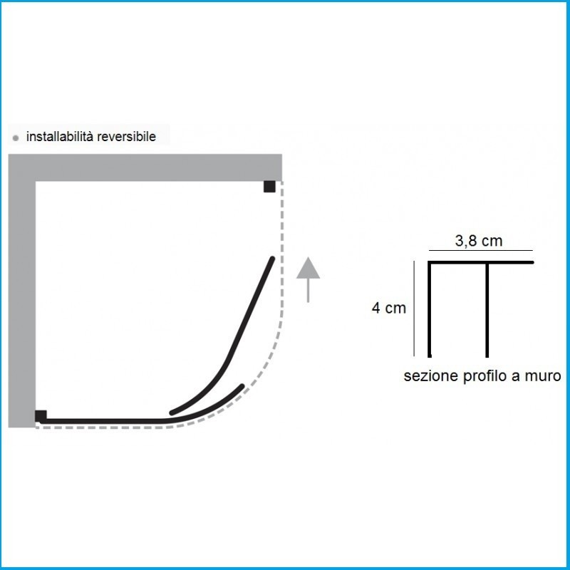 La cabina doccia semicircolare scorrevole, a fronte di una piccola riduzione dello spazio d'entrata, permette una più semplice collocazione di sanitari o mobili bagno in prossimità della cabina doccia.