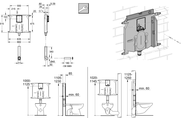 LA CASSETTA DA INCASSO GROHE E' PROGETTATA PER UNA FACIE E VELOCE ISTALLAZIONE AD INCASSO NELLE PARETI IN MURATURA. L'AZIONAMENTO AVVIENE CON COMANDO FRONTALE E' ISOLATA CONTRO LA CONDENSA LA CASSETTA INCLUDE CANOTTO DI COLLEGAMENTO. RISCIACQUO A DUE QUANTITA' (3 E 6/9 LITRI)