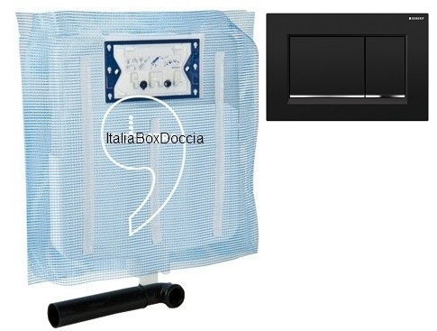 CASSETTA DA INCASSO GEBERIT SIGMA 8 CM (unica+) COMPLETA DI PLACCA DOPPIO PULSANTE SIGMA 30 DI COLORE NERO CON CANOTTO DI COLLEGAMENTO