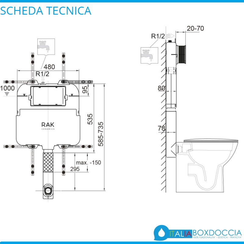 Il modulo per installazione su pareti in muratura garantisce un fissaggio sicuro del sanitario sospeso.