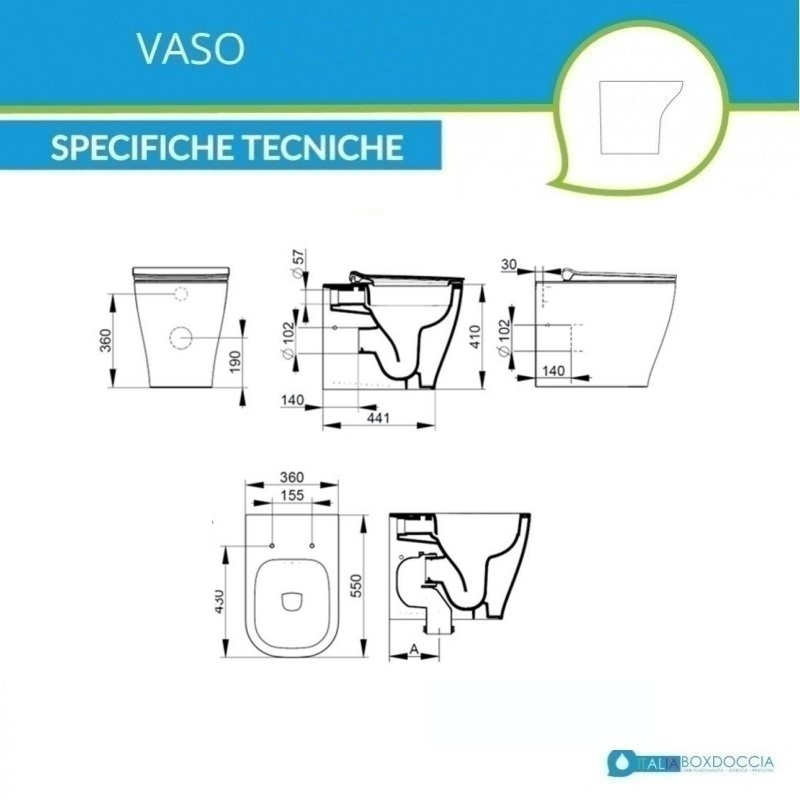 Il vaso filo muro riduce l'ingombro dei sanitari e facilita le operazioni di pulizia del bagno. Lo scarico a parete del wc può essere trasformato in scarico a pavimento utilizzando una curva tecnica acquistabile separatamente.