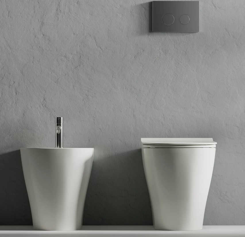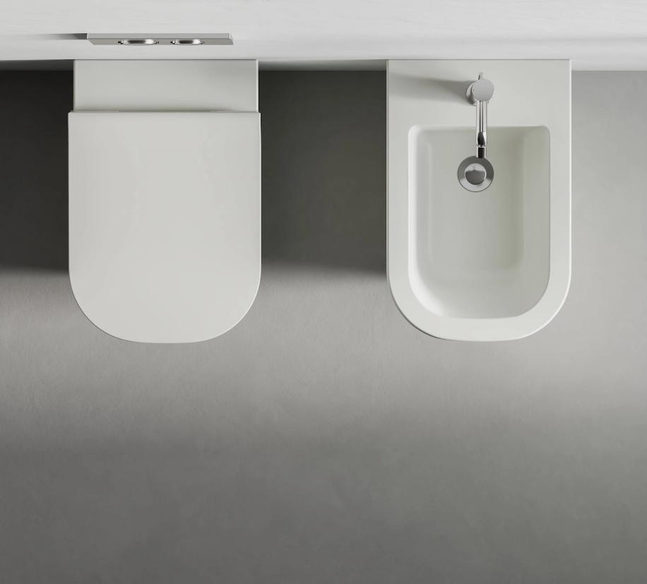Vaso e bidet filo muro sono realizzati in ceramica di alta qualità e assicurano il massimo della resistenza nel tempo. La finitura colore bianco lucido ne esalta le forme e la purezza per un arredo bagno moderno e alla moda.
