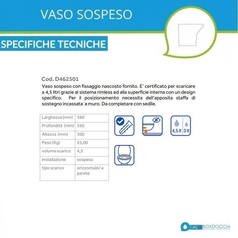 Il vaso sospeso riduce l'ingombro dei sanitari e facilita le operazioni di pulizia del bagno.