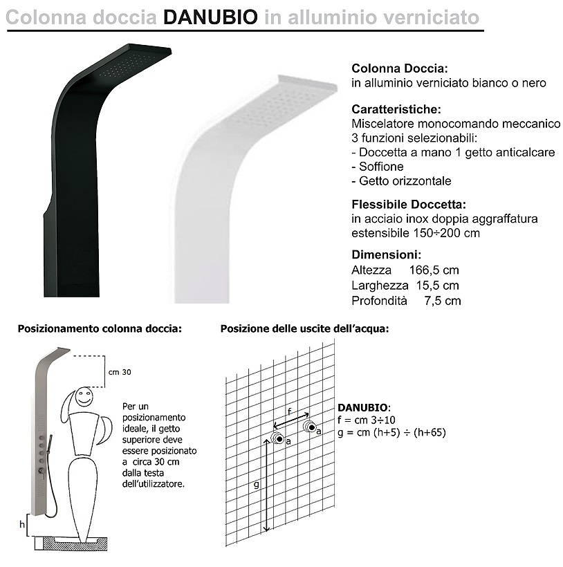 Colonna doccia Danubio Metaform mutifunzione in allumino verniciato bianco. La colonna doccia è completa di: