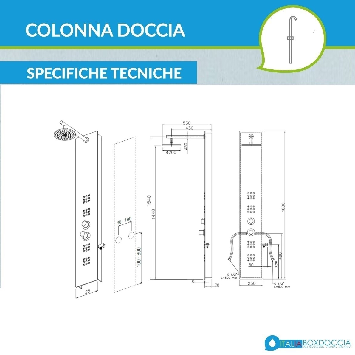 Il flessibile in acciaio inox doppia aggraffatura estensibile da 150 a 200 cm assicura una totale libertà di movimento durante la doccia. Per un funzionamento ottimale, la Colonna Doccia Multifunzione CRYSTAL richiede una pressione minima di 1,5 BAR.