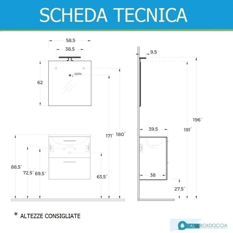 La costante ricerca su materiali, comodità di utilizzo e design, scaturisce in Ruby 60, un mobile da bagno dallo stile accattivante, con lavabo in ceramica, materiale solido e antibatterico, facile da pulire. La base è costituita da doppio cassettone. Specchio con lampada led e altoparlante bluetooth.