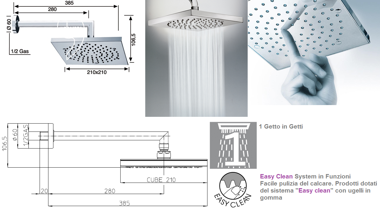 Sei alla ricerca di un soffione doccia che sappia fare la differenza in termini di bellezza e praticità di utilizzo? Se la risposta è sì lo staff dell'ItaliaBoxDoccia vuole suggerirti allora l'acquisto del soffione doccia a parete 20x20 mm con braccio di 300 mm firmato Bossini modello Cube (cod. H70720G), tutto in ottone cromato e a 1 getto d'acqua (a pioggia). Il prodotto di cui ti stiamo proponendo l'acquisto fa parte della collezione Cube con forme geometriche, che ben si adattano agli spazi doccia di bagni con stile d'arredo moderno e contemporaneo. Insomma, quello di cui ti stiamo parlando è davvero un prodotto di grande qualità, con un prezzo accattivante e in grado di regalarti momenti di puro relax sotto la doccia, scegliendo di regolare l'intensità del getto d'acqua come meglio credi. La firma è autorevole: si tratta di Bossini, azienda leader nella produzione della rubinetteria da bagno, operante sul mercato con professionalità e serietà, forte di un'esperienza pluridecennale. Insomma, ti stiamo proponendo di valutare un prodotto 100% made in Italy, realizzato con prodotti di alta qualità, tutti opportunamente selezionati in funzione di un'ottima resistenza nel tempo.