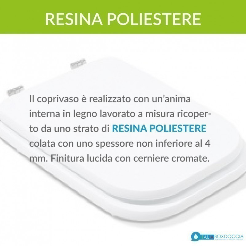 Il sedile copri WC è completamente realizzato in legno stabilizzato, colato in poliestere, materiale solido e resistente che consente una pulizia rapida e facilitata.
