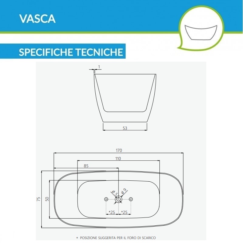 La vasca da bagno è realizzata in acrilico doppio strato, un materiale liscio e lucido usato per la realizzazione di sanitari e molto apprezzato per le sue doti di resistenza al tempo e all'usura. Ma non solo: la particolare consistenza rende le superfici anche termiche, nel senso che riduce la differenza di temperatura nel contatto tra il corpo e il materiale della vasca. Inoltre, al contrario di quanto accade per la ceramica, con l'acrilico il calore dell'acqua viene anche meglio trattenuto, consentendo un relax assoluto per tutta la durata del bagno.