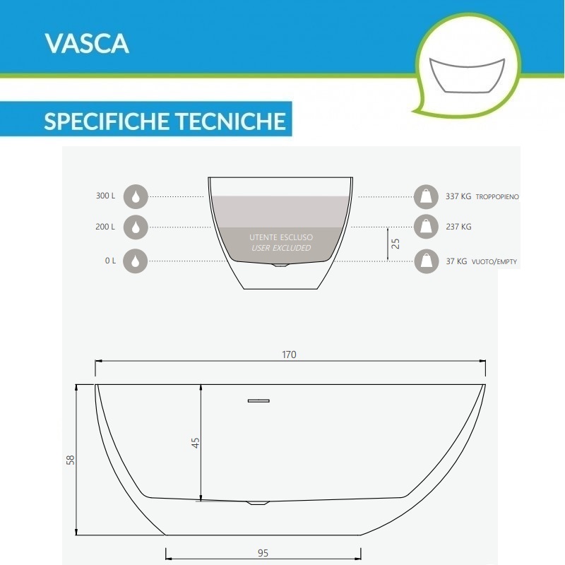 La vasca da bagno è realizzata in acrilico doppio strato, un materiale liscio e lucido usato per la realizzazione di sanitari e molto apprezzato per le sue doti di resistenza al tempo e all'usura. Ma non solo: la particolare consistenza rende le superfici anche termiche, nel senso che riduce la differenza di temperatura nel contatto tra il corpo e il materiale della vasca. Inoltre, al contrario di quanto accade per la ceramica, con l'acrilico il calore dell'acqua viene anche meglio trattenuto, consentendo un relax assoluto per tutta la durata del bagno.