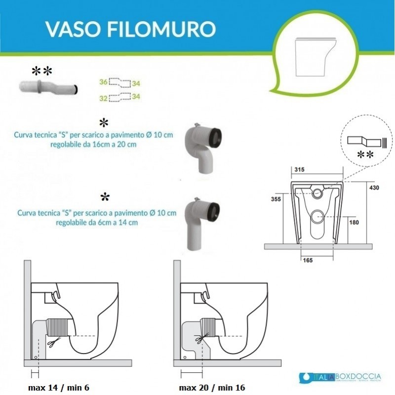 Il modello noLIta grazie allo scarico traslato può essere installato anche su impianti esistenti senza dover apportare modifiche invasive all'impianto. Il sistema scarico traslato permette di installare i sanitari in impianti dove la distanza dal centro foro dello scarico al muro è compresa tra 6 a 20 cm, il tutto attraverso apposite curve tecniche. A completare il sistema scarico traslato è previsto un raccordo eccentrico che offre una flessibilità di 2 cm.