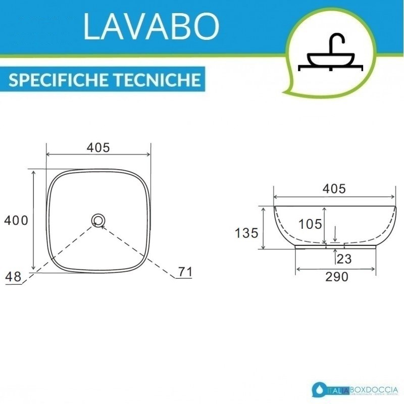 Il lavabo modello D55, ha montaggio d'appoggio, e può essere installato su mensole, piani in legno o mobili.