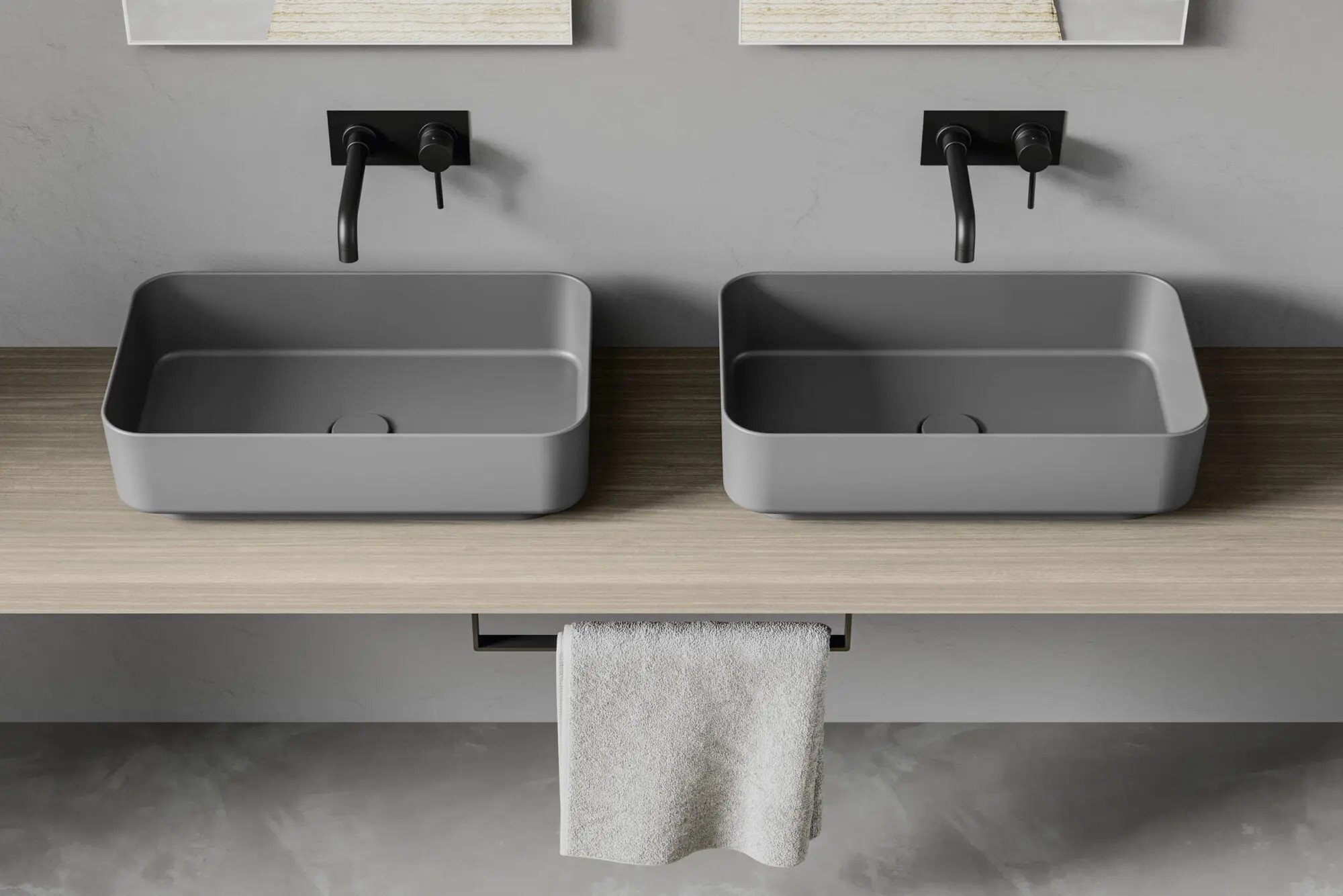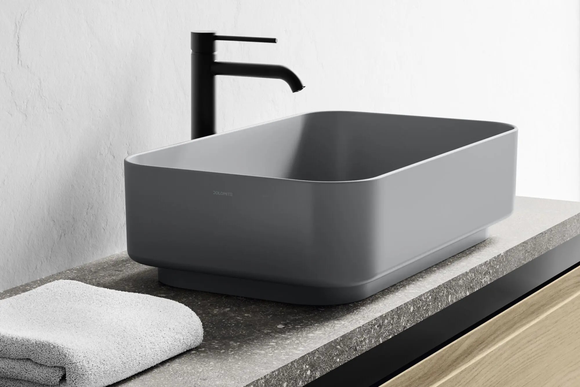 Lavabo da appoggio rettangolare larghezza 64 x profondità 38,5 cm. in ceramica grigio cemento modello noemi di Dolomite