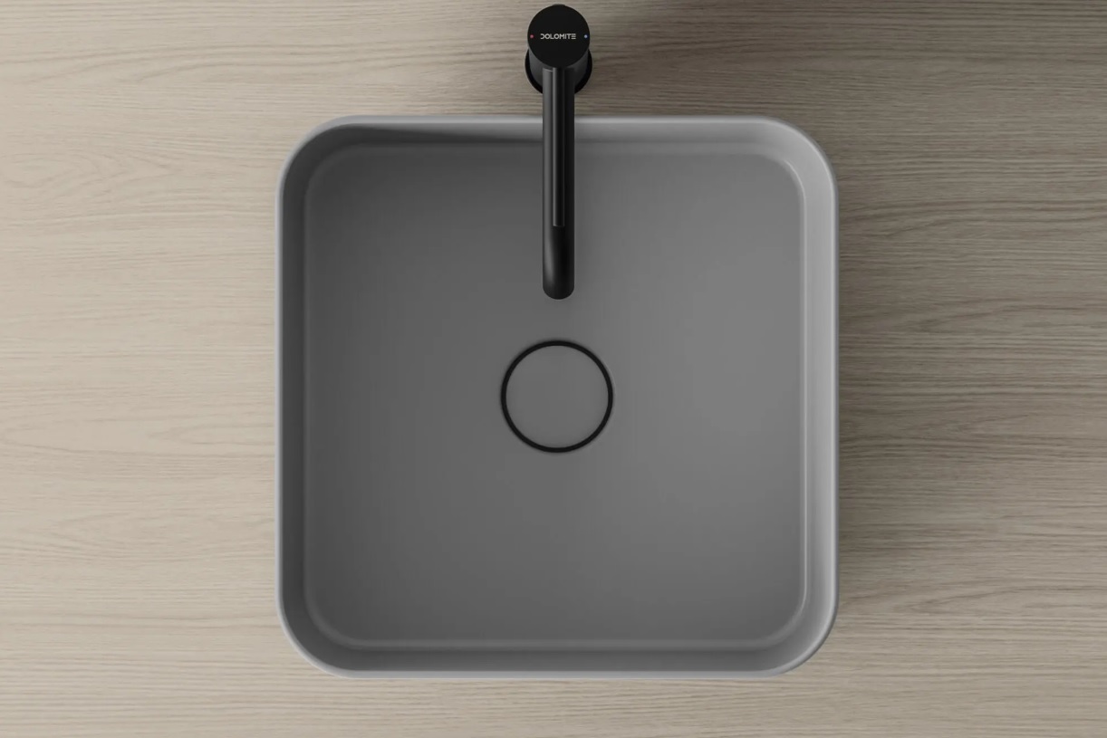 Lavabo da appoggio quadro 40x40 cm. in ceramica grigio cemento modello Noemi di Dolomite
