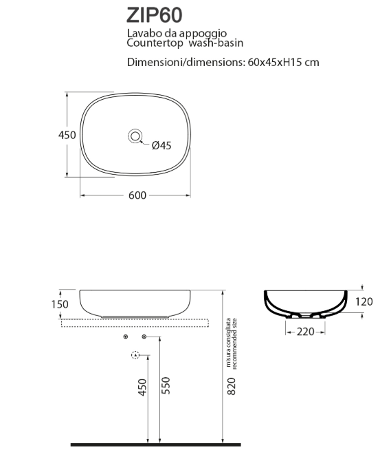 E' predisposto per miscelatori lavabo a parete o su piano, poichè non dispone del foro rubinetteria, ed è senza troppo pieno.