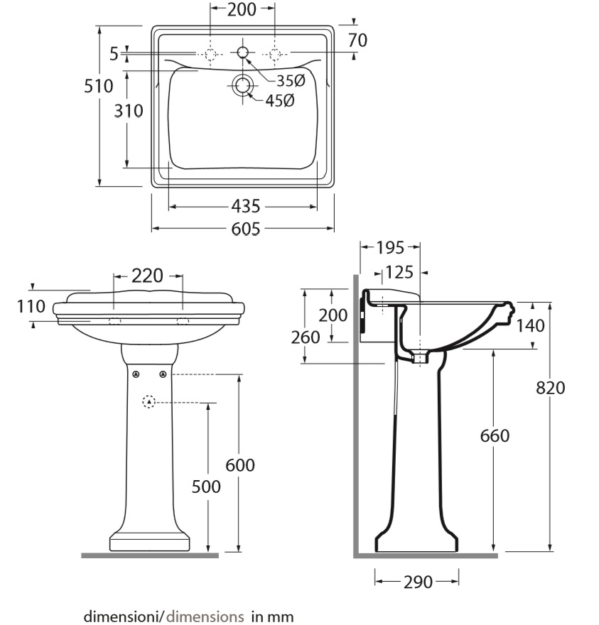 Anche il bagno può diventare una zona della casa caratterizzata da design e romanticismo, e che rispecchia lo stile di tutta la casa. I lavabi con colonna o freestanding rappresentano una gamma largamente apprezzata in tutto l'arredobagno; la colonna portante svolge una duplice funzione, di sostegno al lavabo superiore e di design coprendo il sifone. Lo stile inconfondibile di questo articolo, insieme alla sua provata qualità, lo rende unico nel suo genere.