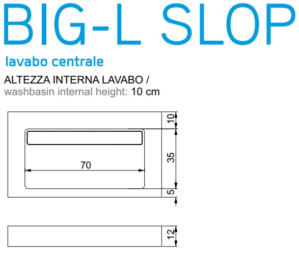 Vasca lavabo: Lunghezza 70 x Profondità 35 x 10 Altezza interna cm