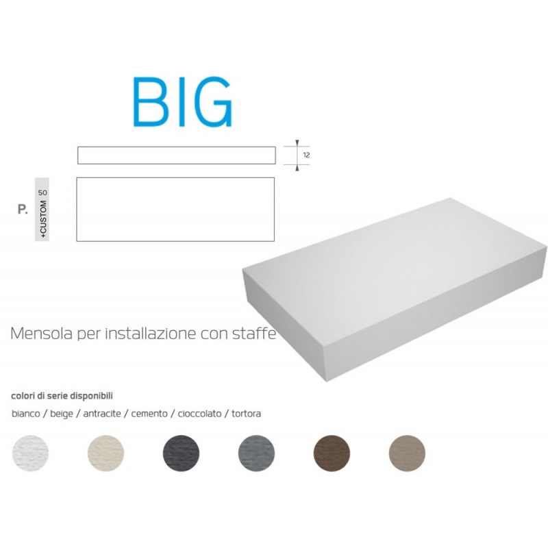 - IL top BIG può essere installato direttamente sospeso, come base d'appoggio per un lavabo sovrapiano, con fissaggio mediante staffe incluse nella confezione.
