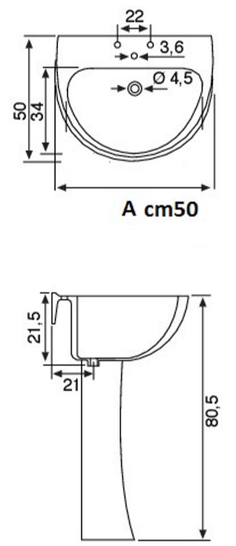 Qualora si volesse impiegare il lavabo con miscelatori a tre fori si può forare autonomamente il lavabo seguendo le predisposizioni presenti dalla parte interna.
