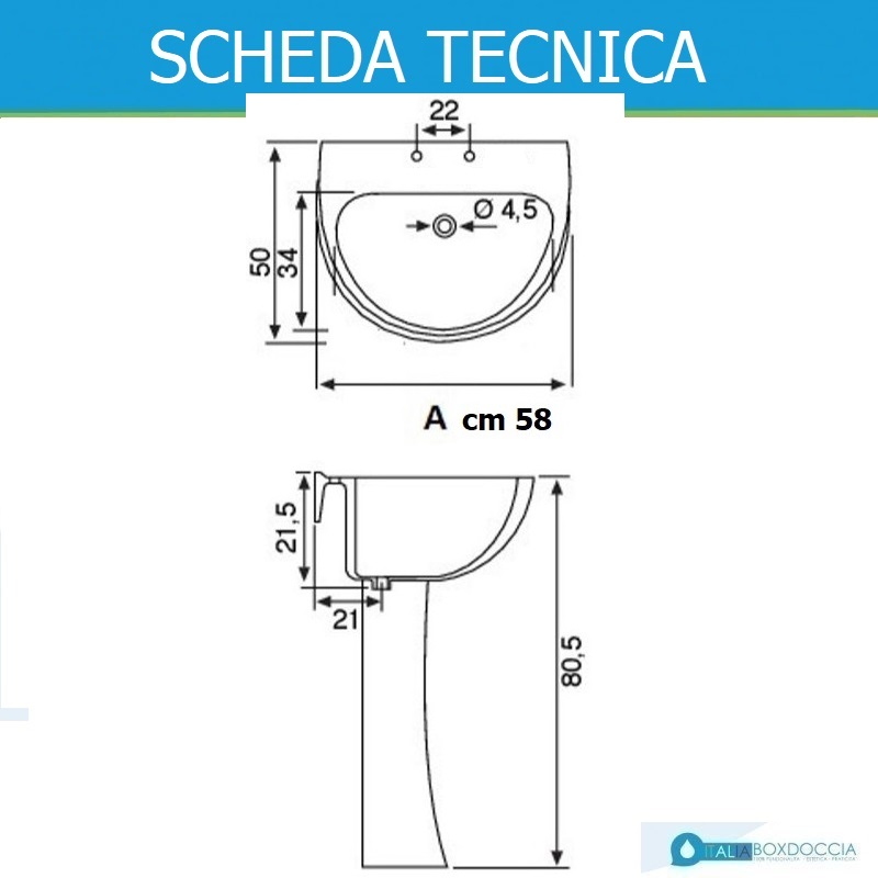 Lavabo 58 cm LUCY con colonna in ceramica bianca tre fori