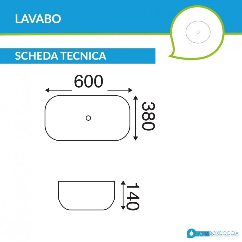 Il lavabo da appoggio è una soluzione minimal ma funzionale, capiente e confortevole, per il bagno contemporaneo. Il lavabo in ceramica, misura 60 x 38 x 14h cm, è ideale per mensoloni e top per lavabi da appoggio. E' predisposto per miscelatori lavabo a parete o su piano, poichè non dispone del foro rubinetteria, ed è senza troppo pieno.
