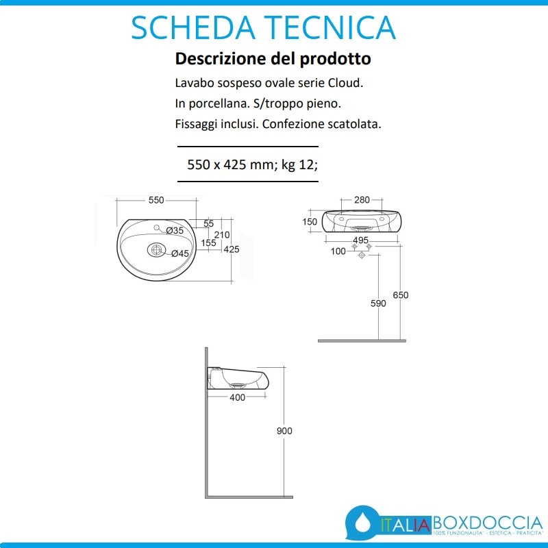 Se sei alla ricerca di un lavabo per il tuo bagno, puoi valutare questo realizzato in ceramica bianco opaco matt collezione Cloud di Rak Ceramics. Linee fluide, forme mutevoli come nuvole che si prestano a molteplici interpretazioni e che giocano con la luce restituendo un effetto morbido, avvolgente, ideale per un ambiente bagno raffinato ma al tempo stesso funzionale ed accogliente. Un prodotto tra l'altro di ottima qualità, questo lavandino bagno va installato sospeso, ed è privo di foro troppo pieno ma dotato di foro rubinetto. Di forma ovale, il lavandino in questione non è incluso di rubinetto e piletta, tuttavia nella confezione sono inclusi il copripiletta in ceramica e i fissaggi. Dimensioni cm 55x42,5x15h.