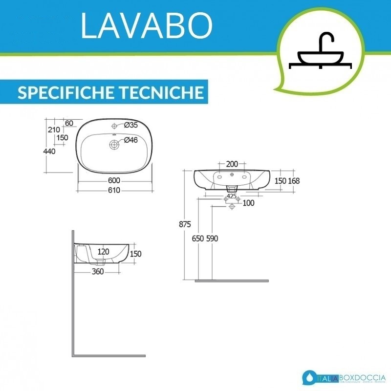 Se sei alla ricerca di un lavabo per il tuo bagno, puoi valutare questo realizzato in ceramica bianca di Rak Ceramics. Inserirai nel tuo bagno un prodotto di qualità. Questo lavandino bagno può essere installato sia in appoggio che sospeso, ed è dotato di foro troppo pieno e foro rubinetto. Di forma ovale, il lavandino in questione non è incluso di rubinetto e piletta. I fissaggi sono inclusi nella confezione. Dimensioni cm 60x44x15h