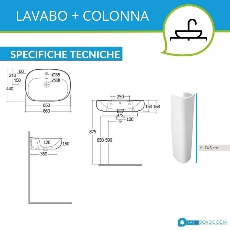 Se sei alla ricerca di un lavabo per il tuo bagno, puoi valutare questo realizzato in ceramica bianca di Rak Ceramics. Inserirai nel tuo bagno un prodotto di qualità. Questo lavandino con colonna è dotato di foro troppo pieno e foro rubinetto. Di forma ovale, il lavandino in questione non è incluso di rubinetto e piletta. I fissaggi sono inclusi nella confezione. Dimensioni cm 65x44x15h