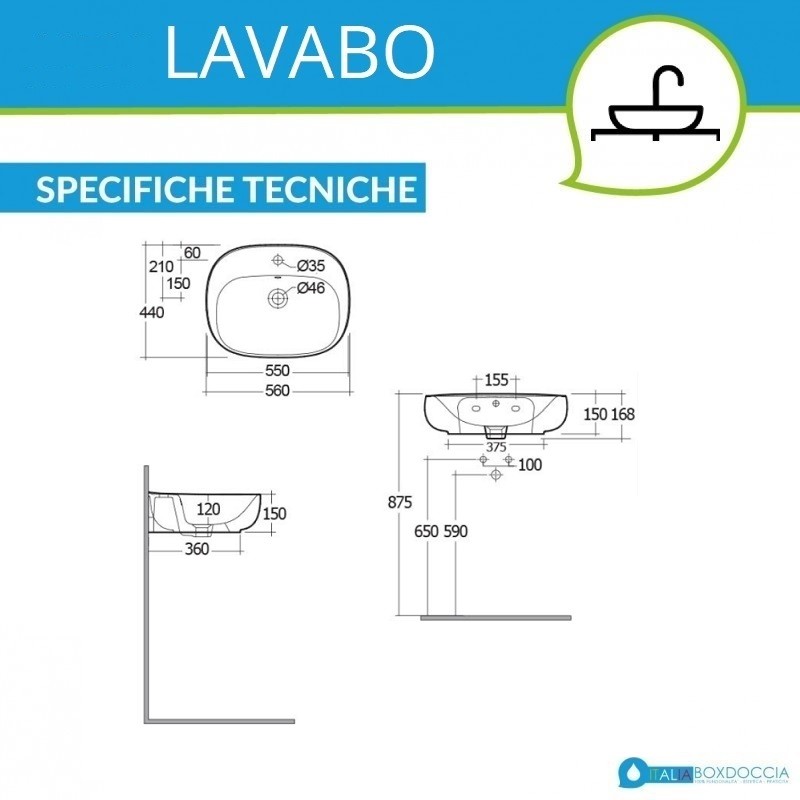 Se sei alla ricerca di un lavabo per il tuo bagno, puoi valutare questo realizzato in ceramica bianca di Rak Ceramics. Inserirai nel tuo bagno un prodotto di qualità. Questo lavandino con semicolonna è dotato di foro troppo pieno e foro rubinetto. Di forma ovale, il lavandino in questione non è incluso di rubinetto e piletta. I fissaggi sono inclusi nella confezione. Dimensioni cm 55x44x15h