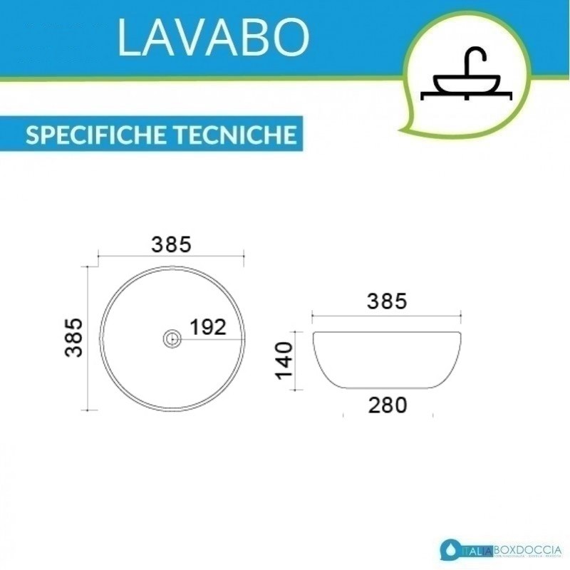 Lavabo diametro 38,5 cm in ceramica lucida d'appoggio altezza 14 cm