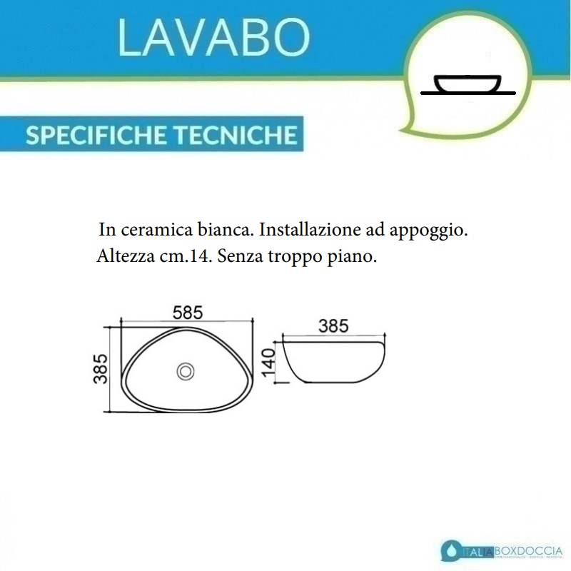 Lavabo d'appoggio in ceramica bianca lucida 58,5 cm larghezza x 38,5 cm profondità