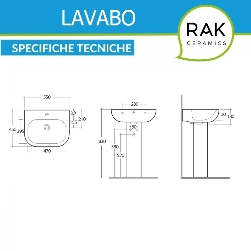 Se sei alla ricerca di un lavabo per il tuo bagno, puoi valutare questo realizzato in ceramica bianca di Rak Ceramics. Inserirai nel tuo bagno un prodotto di qualità. Questo lavandino bagno è installato su colonna, ed è dotato di foro troppo pieno e foro rubinetto.