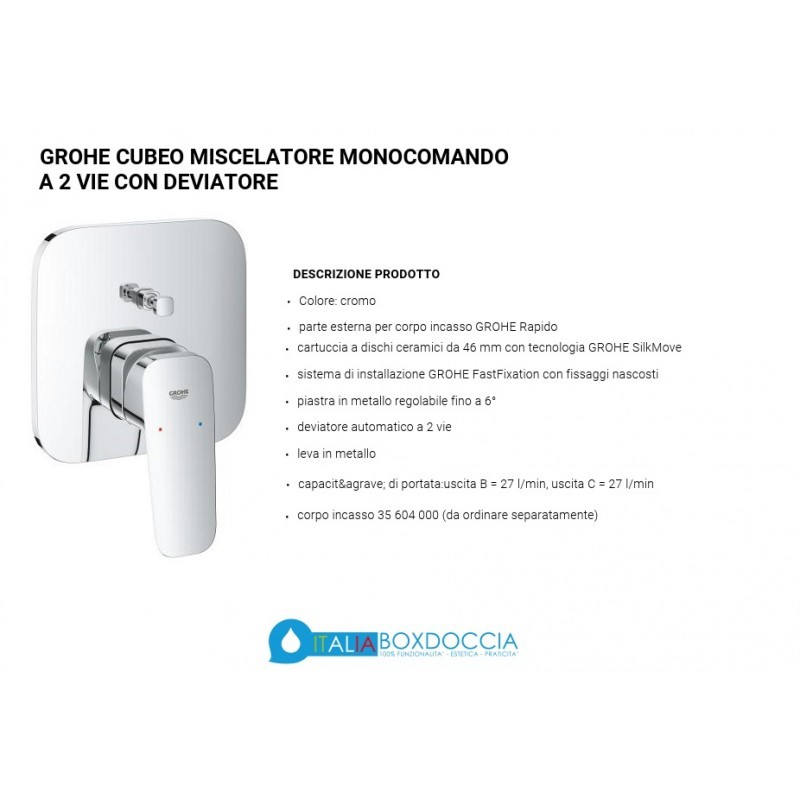 - Tipologia: miscelatore monocomando per doccia a 2 vie serie cubeo marca Grohe compreso di corpo incasso (35604000)