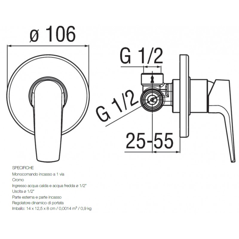 RIEPILOGO CARATTERISTICHE MONOCOMANDO DOCCIA INCASSO