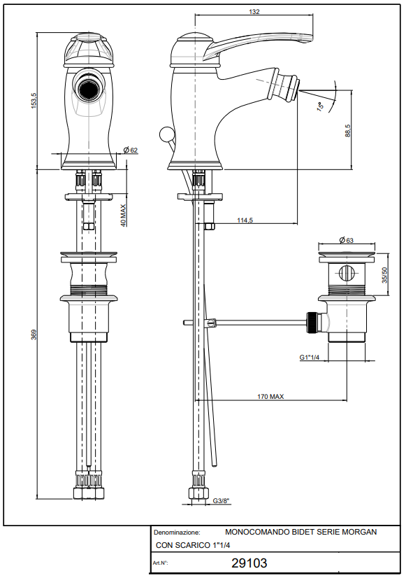 - 1 miscelatore per bidet art. 29103 con salterello e piletta di scarico