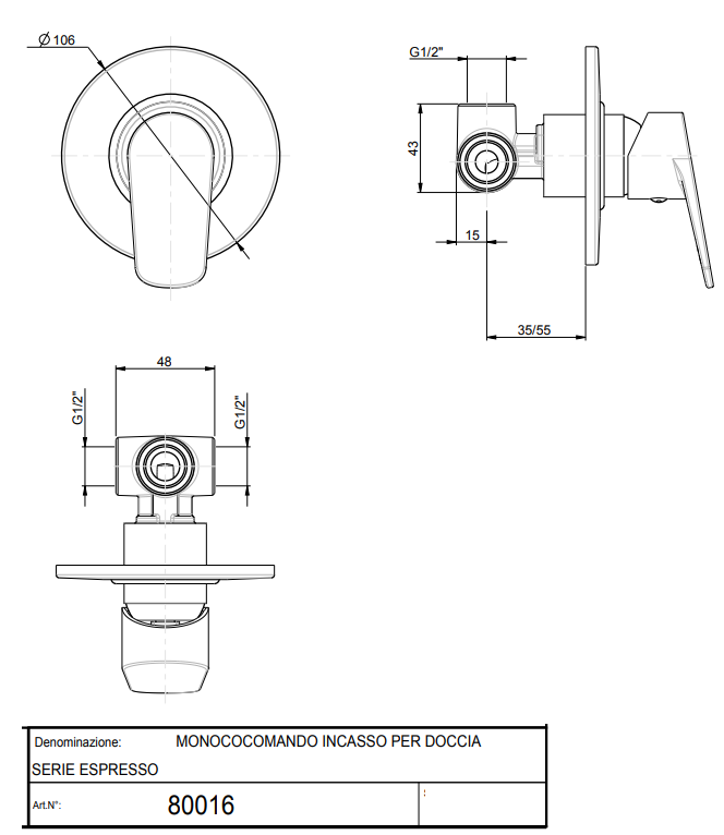 - 1 miscelatore incasso doccia a muro art. 80016 completo di corpo incasso