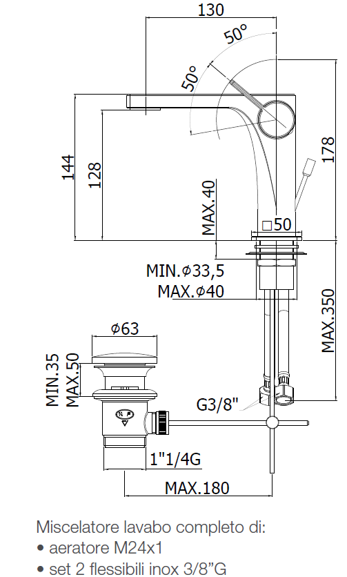Foro miscelatore: 1"1/4G. Piletta inclusa