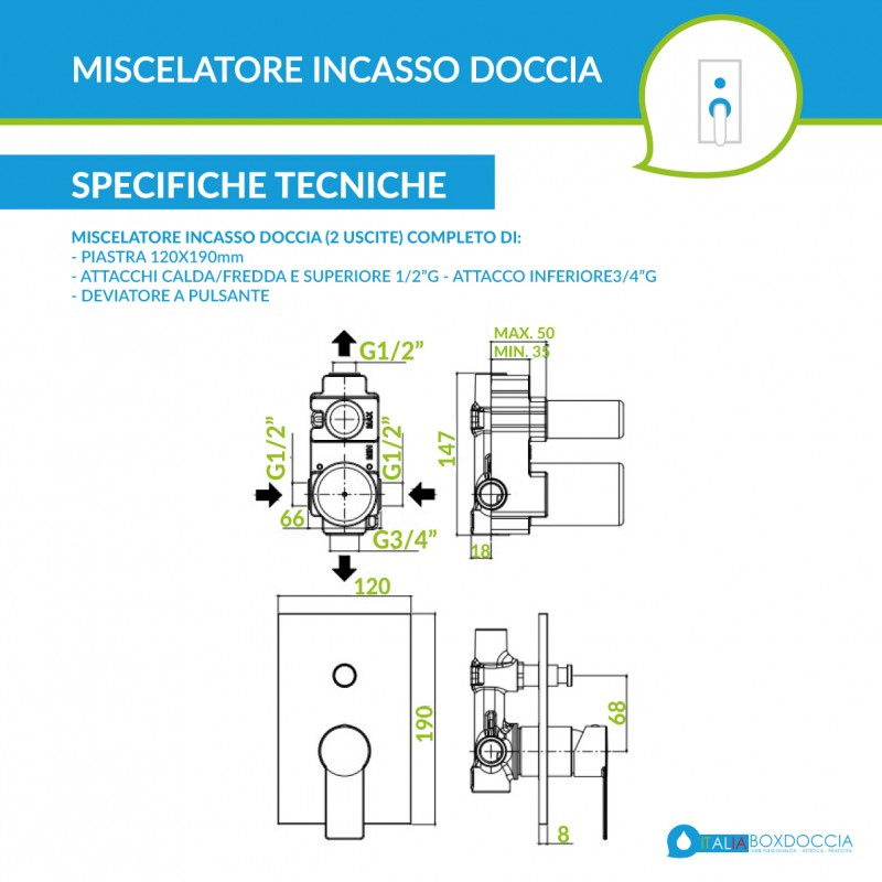 Tipologia: miscelatore doccia a 2 uscite con deviatore
