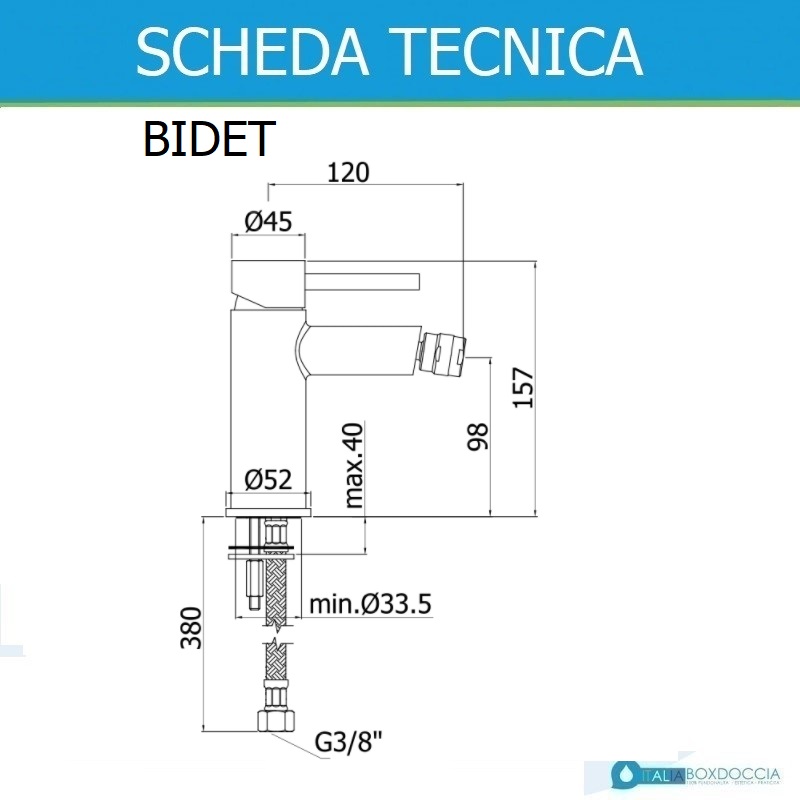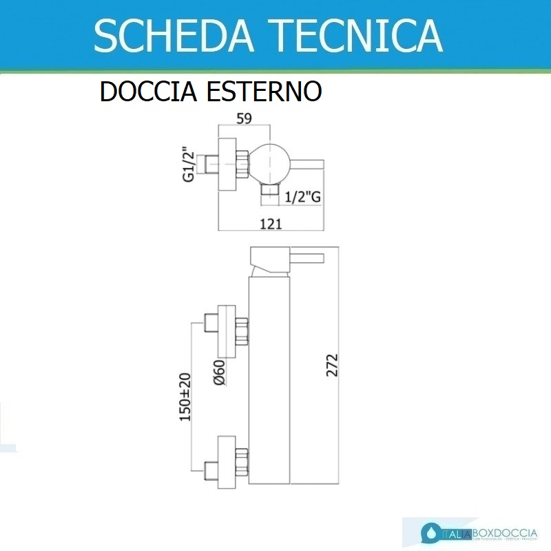 Il miscelatore doccia è della tipologia con installazione a muro esterna con l'attacco per il flessibile nella parte inferiore. Tubo flessibile non incluso.